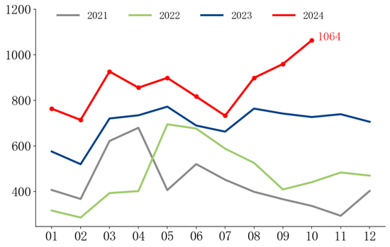 制造业用钢处于相接增长后的高位防守阶段,出口的韧性是市集温情的中枢问题。就国内而言,“两新”拉动是制造用钢业的主要期待所在,不外这部分的增量展望会比拟褂讪,笃定性相对较强。面前比拟不笃定的是出口的韧性。具体来看,1-10月份,汽车出口依赖度约20%,空调出口依赖度约24%,洗衣机的出口依赖度约29%,雪柜的出口依赖度约77%。从胜利出口来看,钢材出口依然处于积年高位,夙昔增量空间展望会有所减小。