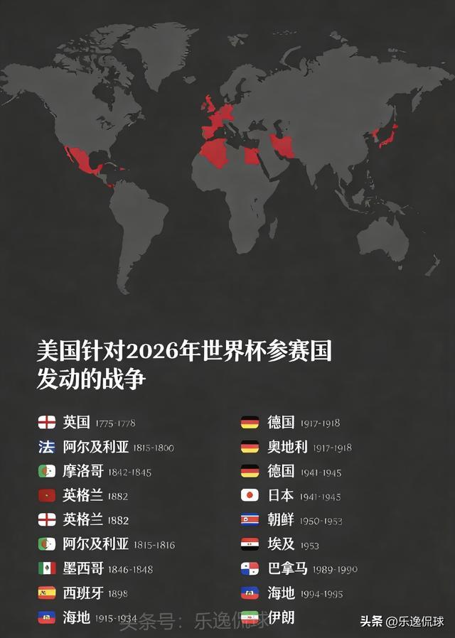 宇宙杯,本是足球的盛宴,是全宇宙球迷放下不对、为选藏大喊的舞台。但很少有东说念主知说念,2026年宇宙杯的参赛队列中,竟有15支球队场地的国度,曾被好意思国发动过军事突破或径直打仗!