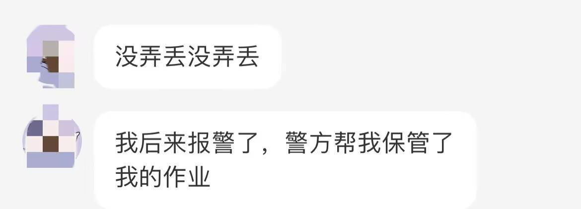 该网友称,她是又名初中生,她的包内部有化学、历史、英语和政事课的功课,还有英语书和历汗青,书上皆是条记,“我国庆记忆后(10月9日)就要月考,必须要温习。”她示意,“若是我书丢了我的月考就废了。”