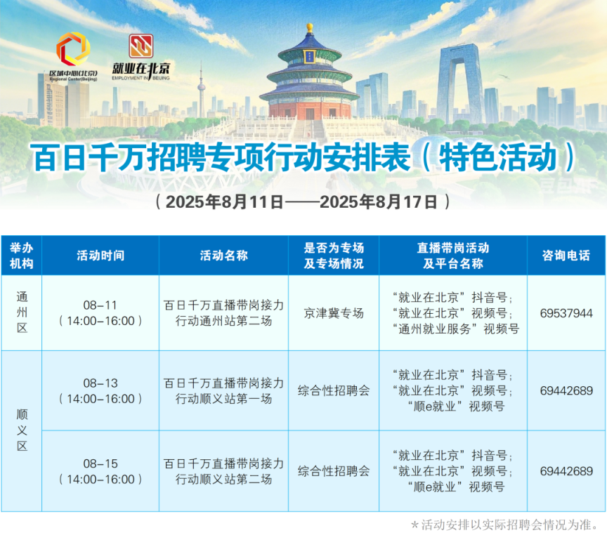 本年6月起,市东谈主社局在全市限制内开展“百日服务攻坚、千万岗亭推送”大型系列公益招聘专项行径,运用100天左右技艺,聚焦高校毕业生等要点群体多元求职需要及热门行业、新兴产业、要点企业用工需求,会聚组织直播带岗尽力算作,强化管事指挥、劳脱手段培训、服务创业计策复古等服务,助推高质地充分服务。本周算作如下。